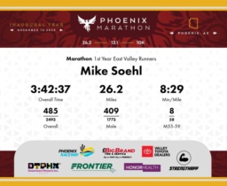 Date: Dec. 13, 2025 Participant: Mike Soehl #3009 Race: 2025 Phoenix Marathon Distance: 26.2 miles