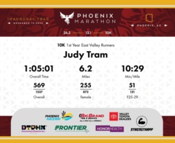 Date: Dec. 13, 2025 Participant: Judy Tram #6922 Race: 2025 Phoenix 10K Distance: 6.2 miles