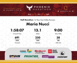 Date: Dec. 13, 2025 Participant: Maria Nucci #7559 Race: 2025 Phoenix Half Marathon Distance: 13.1 miles
