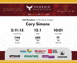 Date: Dec. 13, 2025 Participant: Cory Simons #5394 Race: 2025 Phoenix Half Marathon Distance: 13.1 miles
