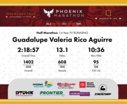 Date: Dec. 13, 2025 Participant: Guadalupe Valeria Rico Aguirre #7630 Race: 2025 Phoenix Half Marathon Distance: 13.1 miles