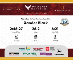 Date: Dec. 13, 2025 Participant: Xander Black #3383 Race: 2025 Phoenix Marathon Distance: 26.2 miles