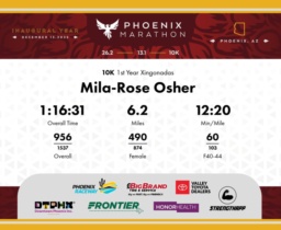 Date: Dec. 13, 2025 Participant: Mila-Rose Osher #8355 Race: 2025 Phoenix 10K Distance: 6.2 miles