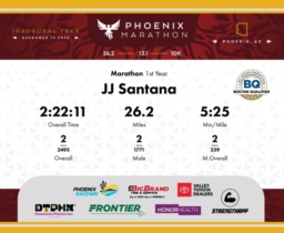 Date: Dec. 13, 2025 Participant: JJ Santana #3304 Race: 2025 Phoenix Marathon Distance: 26.2 miles