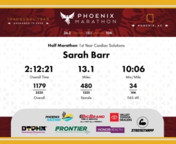 Date: Dec. 13, 2025 Participant: Sarah Barr #4091 Race: 2025 Phoenix Half Marathon Distance: 13.1 miles