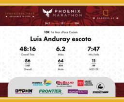 Date: Dec. 13, 2025 Participant: Luis Anduray escoto #7897 Race: 2025 Phoenix 10K Distance: 6.2 miles