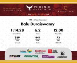 Date: Dec. 13, 2025 Participant: Balu Duraiswamy #8051 Race: 2025 Phoenix 10K Distance: 6.2 miles