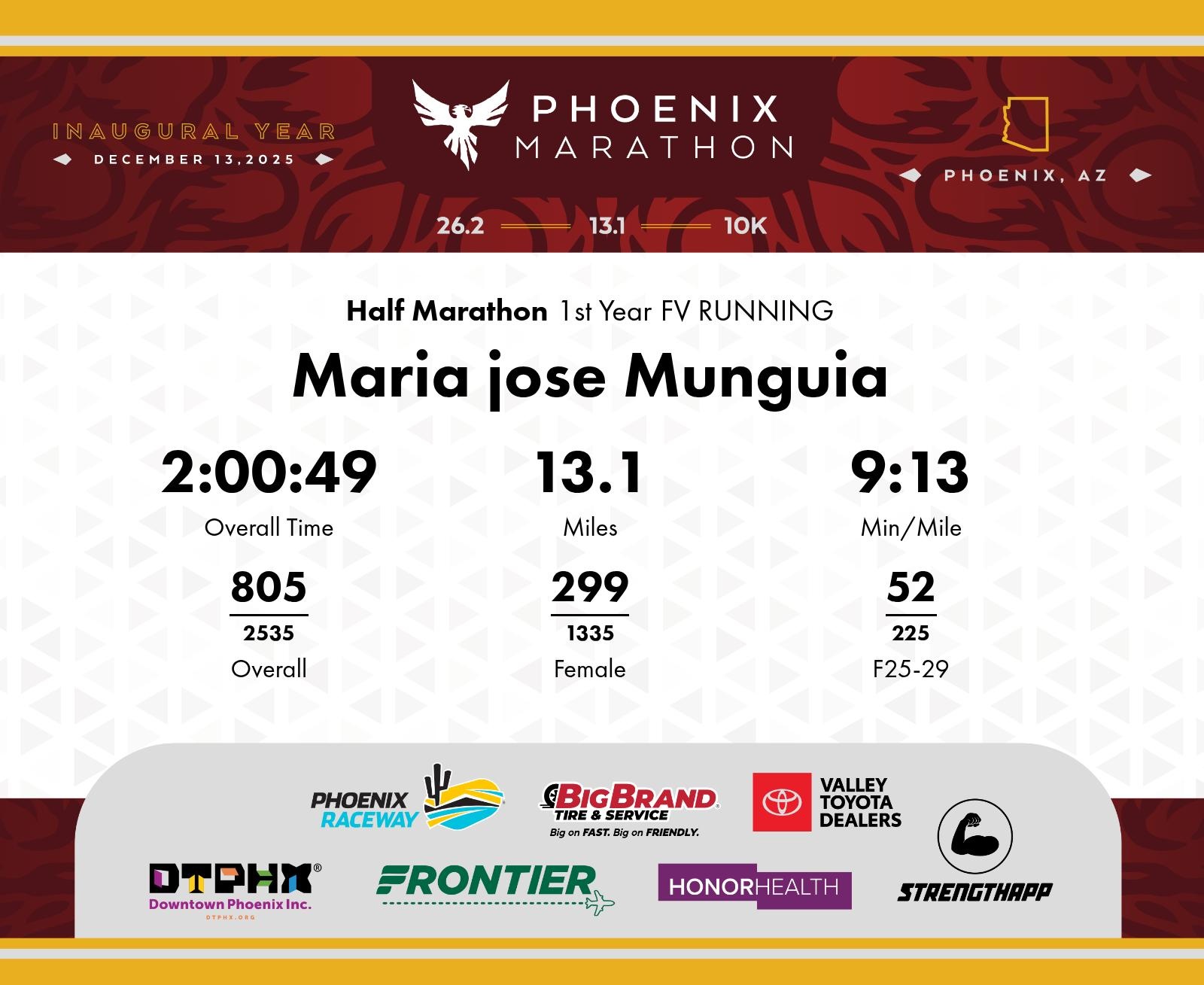 Date: Dec. 13, 2025 Participant: Maria jose Munguia #7535 Race: 2025 Phoenix Half Marathon Distance: 13.1 miles
