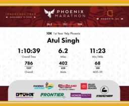 Date: Dec. 13, 2025 Participant: Atul Singh #6838 Race: 2025 Phoenix 10K Distance: 6.2 miles