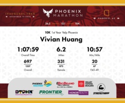 Date: Dec. 13, 2025 Participant: Vivian Huang #6414 Race: 2025 Phoenix 10K Distance: 6.2 miles