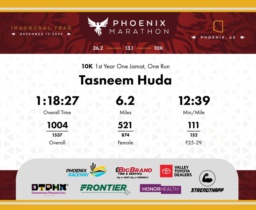 Date: Dec. 13, 2025 Participant: Tasneem Huda #6415 Race: 2025 Phoenix 10K Distance: 6.2 miles