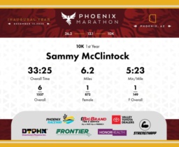 Date: Dec. 13, 2025 Participant: Sammy McClintock #3318 Race: 2025 Phoenix 10K Distance: 6.2 miles