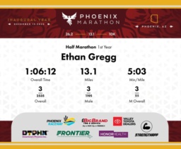Date: Dec. 13, 2025 Participant: Ethan Gregg #3308 Race: 2025 Phoenix Half Marathon Distance: 13.1 miles
