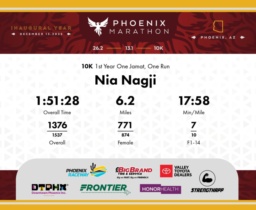 Date: Dec. 13, 2025 Participant: Nia Nagji #8321 Race: 2025 Phoenix 10K Distance: 6.2 miles