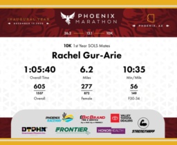 Date: Dec. 13, 2025 Participant: Rachel Gur-Arie #7058 Race: 2025 Phoenix 10K Distance: 6.2 miles